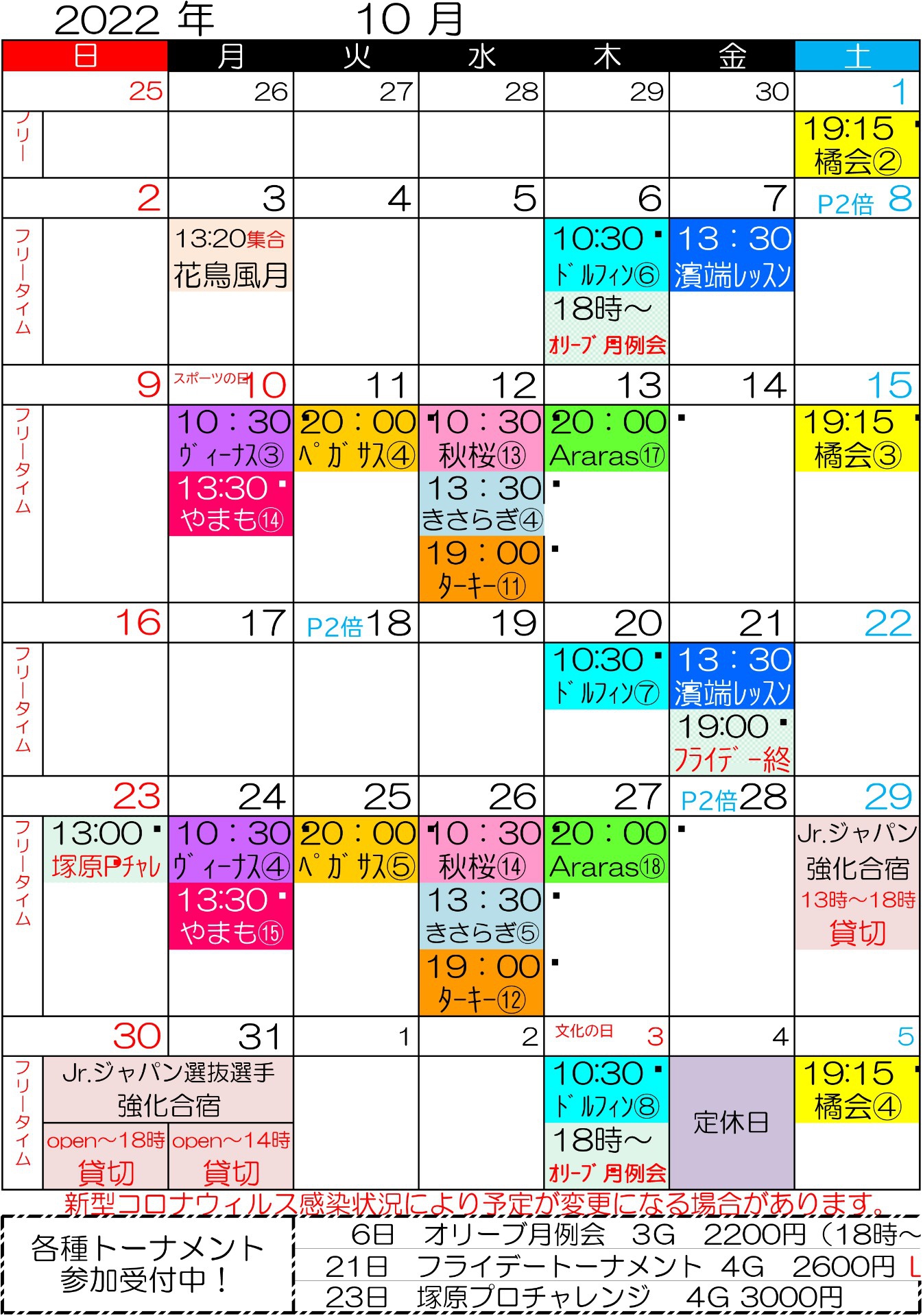 また、金曜日に開催しておりました『濱端レッスン』は第2・第4木曜日に開催いたします。