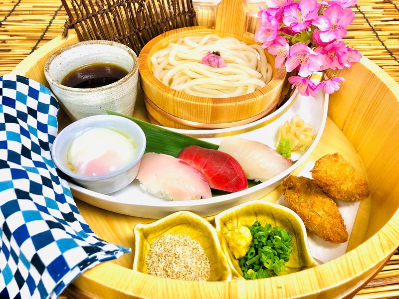 本日の握り3種、カキフライ、温泉玉子とのセットとなっております